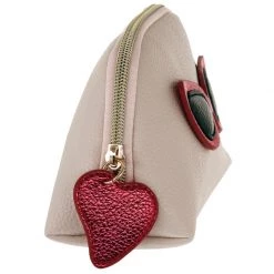 Colorata pochette necessaire in morbidissimo materiale PU con applicazione cucita con motivo scarpetta con il tacco e piccolo strass asimmetrico.