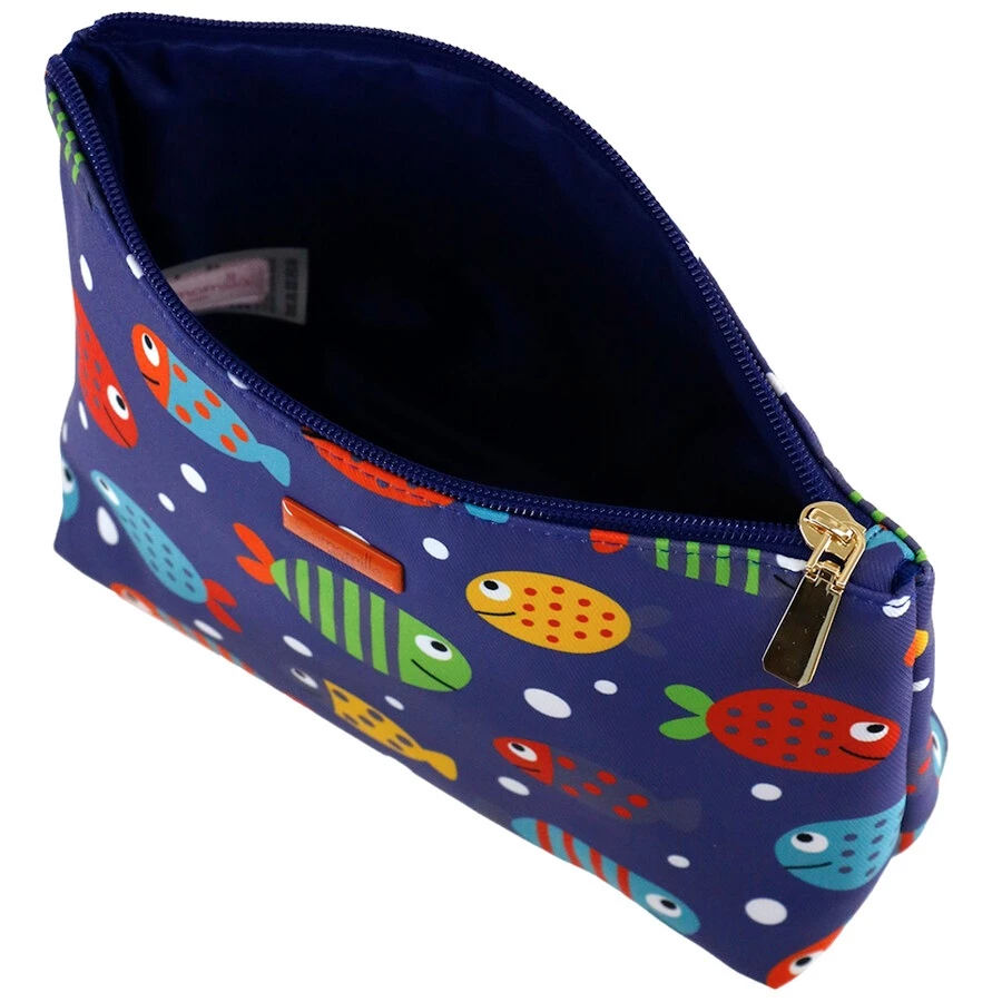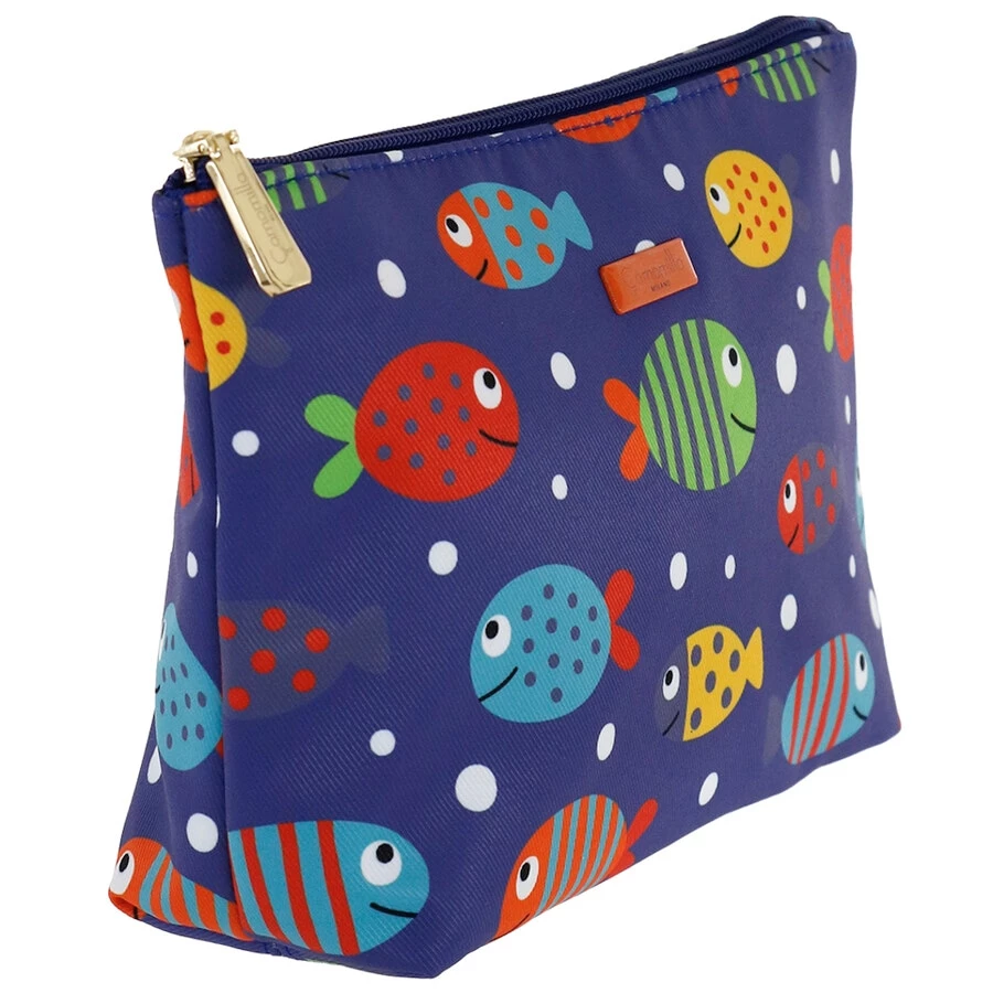 La busta M Tropea by Camomilla Milano è una simpatica e colorata trousse in tessuto poliestere stampato con pesciolini dai mille colori. Chiusura con cerniera . IL logo Camomilla è impresso su targhetta centrale in metallo smaltato color corallo. Sfiziosa e funzionale allo stesso tempo, è comoda per il viaggio, il tempo libero e la palestra. Perfetta anche come portatrucchi. Ottima idea regalo per la donna che ama viaggiare.