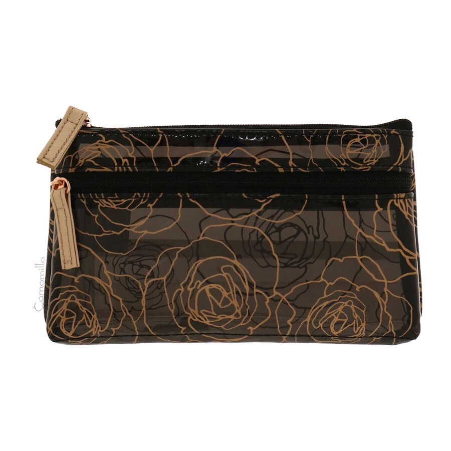 La bustina piatta Rosà è una sfiziosa bustina in materiale PVC stampato con motivo a rose in colore rosegold. Chiusura con cerniera. IL logo Camomilla è applicato su un etichetta a bandiera applicata sul lato della busta. Sfiziosa e funzionale allo stesso tempo è dotata di doppio scomparto, ed è perfetta come portatrucchi, portamonete, o per organizzare piccoli oggetti all’interno della propria borsa. Ottima idea regalo per la donna che ama viaggiare e che dà importanza ai dettagli.