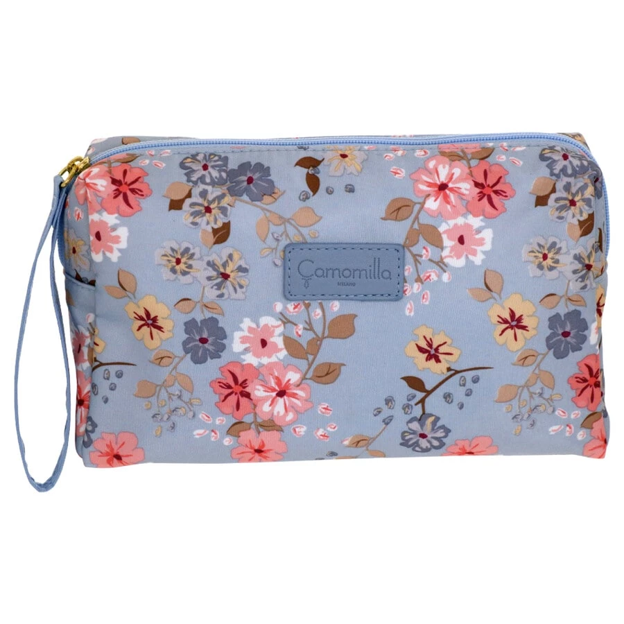 Busta necessaire in tessuto poliestere stampato con fiori allover. Chiusura con cerniera dotata di tiretto con nastro in tessuto XL che ne permette l’uso anche come pochette a mano. Logo Camomilla “for women only” impresso su targhetta centrale in materiale PU tonale. E’ l’Ideale per conservare i prodotti per l’igiene personale ed i cosmetici. Utile anche per i organizzare l’interno della propria valigia durante una vacanza.