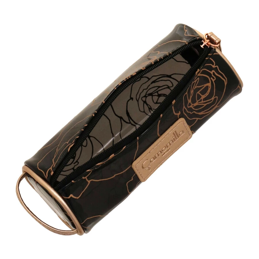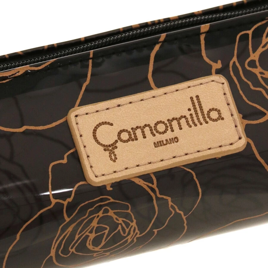 Pratico astuccio in materiale PVC trasparente stampato con motivo rose. Chiusura con cerniera. IL logo Camomilla è impresso su targhetta centrale in materiale PU tonale con il corpo dell’astuccio. Simpatico e funzionale allo stesso tempo, è comodo per il viaggio, il tempo libero e la palestra. Perfetto anche come portatrucchi. Ottima idea regalo per la donna che ama viaggiare.