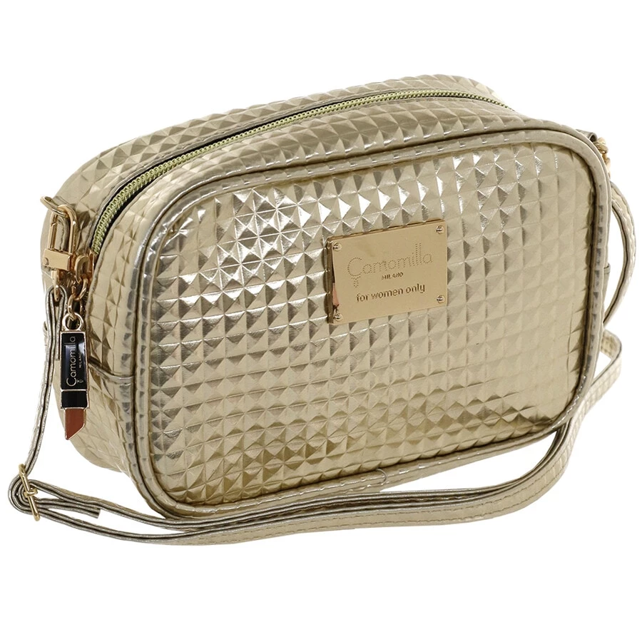 La tracollina oro Citylife by Camomilla Milano è un’elegante e versatile borsetta in materiale poliuretano effetto vernice con lavrazione geometrica in rilievo. La fodera interna è in tessuto poliestere tinta unita. Logo Camomilla “for women only” impresso su targhetta centrale in metallo color oro. La tracollina Citylife è dota di chiusura con cerniera ed il tiretto è decorato con una piccola targhetta con logo Camomilla. La tracolla è regolabile e removibile in quanto dotata di piccolo moschettone. Questo fa sì che possa essere utilizzata anche come pratica pochette a mano o come portatrucchi. E’ un versatile accessorio per le serate estive, gli aperitivi con le amiche e, senza tracollina può essere utile anche come pochette portacosmetici.