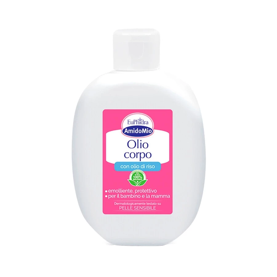 Fino ai 5 anni la barriera epidermica non è del tutto strutturata e la pelle dei più piccoli risulta facilmente soggetta a disidratazione, assorbimento percutaneo, aggressioni esterne ed alterazioni. EuPhidra AmidoMio garantisce trattamenti cosmetici specifici per l’infanzia, con formule semplici e altamente protettive, che permettono il fisiologico sviluppo dell’epidermide sana.OLIO CORPO Nutre dolcemente restituendo idratazione e elasticità alla pelle secca e sensibile, rendendola morbida e setosa. Con Olio di Riso da agricoltura biologica è ideale come detergente per la pelle del neonato e per facilitare la rimozione della crosta lattea.