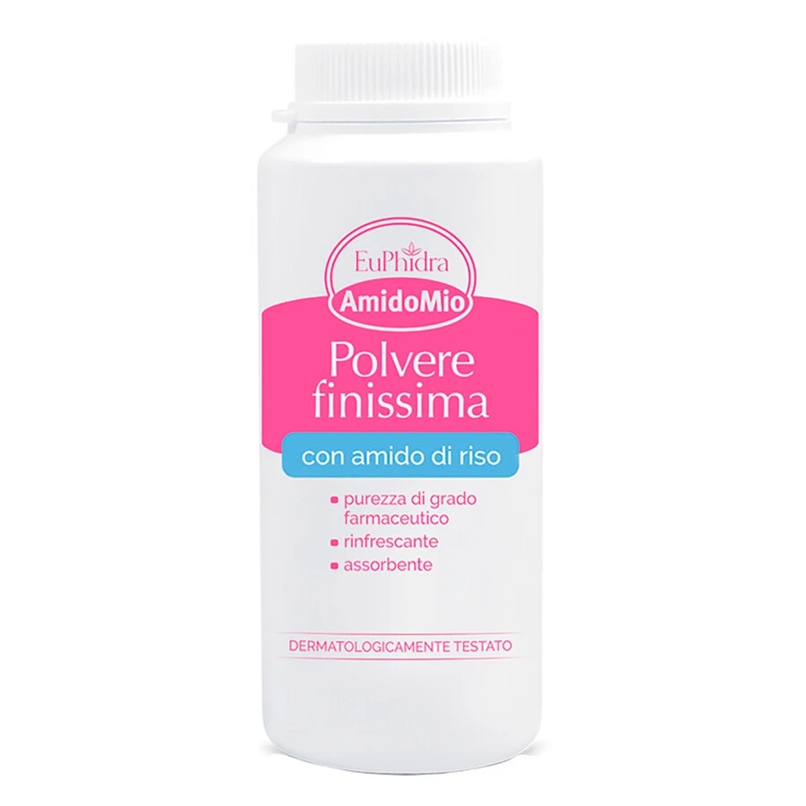 Fino ai 5 anni la barriera epidermica non è del tutto strutturata e la pelle dei più piccoli risulta facilmente soggetta a disidratazione, assorbimento percutaneo, aggressioni esterne ed alterazioni. EuPhidra AmidoMio garantisce trattamenti cosmetici specifici per l’infanzia, con formule semplici e altamente protettive, che permettono il fisiologico sviluppo dell’epidermide sana.POLVERE FINISSIMA, all’amido di riso puro, è una polvere impalpabile che mantiene la pelle asciutta e protetta, prevenendo fenomeni di macerazione. Indicata per i bambini fin dai primi mesi, le particelle fini di AMIDO DI RISO creano un film assorbente e lenitivo, che permette la naturale traspirazione della pelle, lasciandola morbida e levigata.